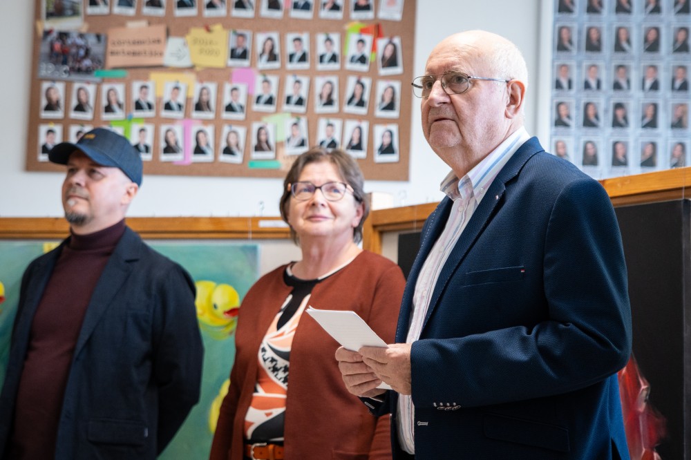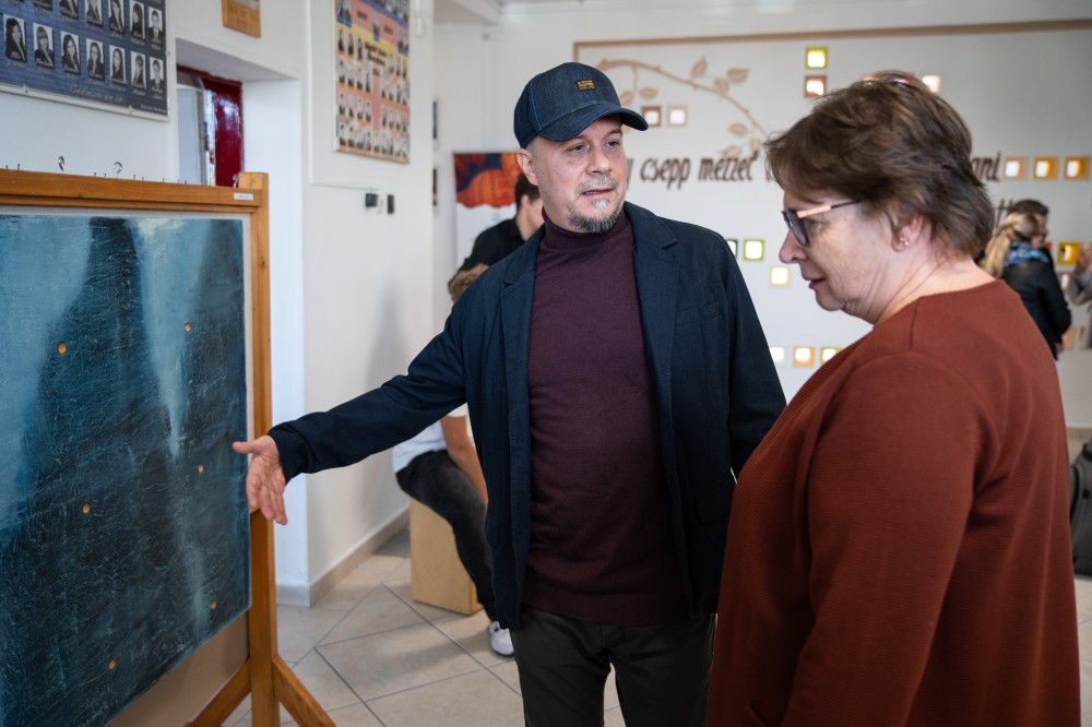 A művész különleges helynek nevezte a Gimi Galériát, amely szerinte inkább egy élettér, mintsem kiállítótér, ahova másképp kell készülni, hiszen — ahogyan fogalmazott — itt lelkes ifjú elmék és mindenre elszánt tanerő éli a hétköznapjait, és őket kell ezúttal közelebb hozni a képekhez.
