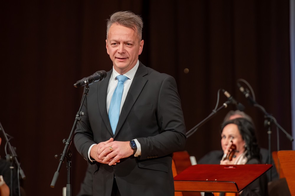„Az az érzés kerített hatalmába, hogy nem is újévi koncerten, hanem egy hangversenyen vagyunk — ütötte fel gondolatsorát Klimon István. — Mert legyen húros, pengetős, vonós, fafúvós, rézfúvós, ütős vagy mindegy milyen hangszer a kodályosok kezében, mindegyik úgy szól, mintha versengenének. Nekünk pedig 2026, ahogyan az előző évek, szintén egy nagy verseny lesz. Mindenki rohanni fog. Minél nagyobb évszámot írunk, annál rohanóbb az életünk. Ezért arra biztatom önöknek, hogy kicsit tudjanak elmerengeni, visszább venni. Az élet sokszor elrohan mellettünk, pedig az a legfontosabb, hogy meg tudjuk élni. Azt kívánom önöknek ma is, és az előttünk lévő 350-néhány napon is, hogy tudják megélni az életet. Mindnyájunknak nagyon jó szórakozást és boldog új esztendőt kívánok.”