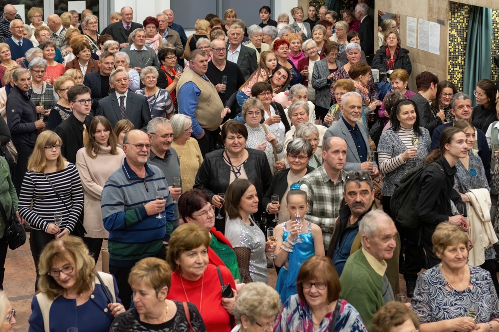 A színpadi évköszöntőt a felvonások szünetében közös pezsgős koccintással is megkoronázták, amikor a karmester, a Melódia Kamarazenekar vezetője, a Kodály Zoltán Alapfokú Művészeti Iskola igazgatója, Kerek Gábor „Közeledő” is az alpolgármester mellé lépett, és közös történeteket felidézve emelték a poharukat a jókedvű publikum felé. Kerek Gábor külön megköszönte mindenkinek, hogy folyamatosan szeretettel viseltetnek zenekaruk iránt.