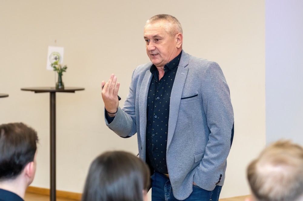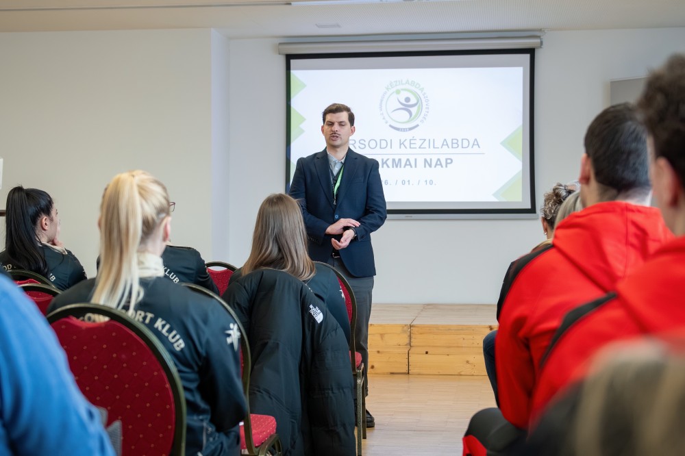 A Kézilabda szakmai nap első felvonásában Juhász István, a szövetség szakmai igazgatója, a találkozó legrangosabb résztvevője tartott előadást.