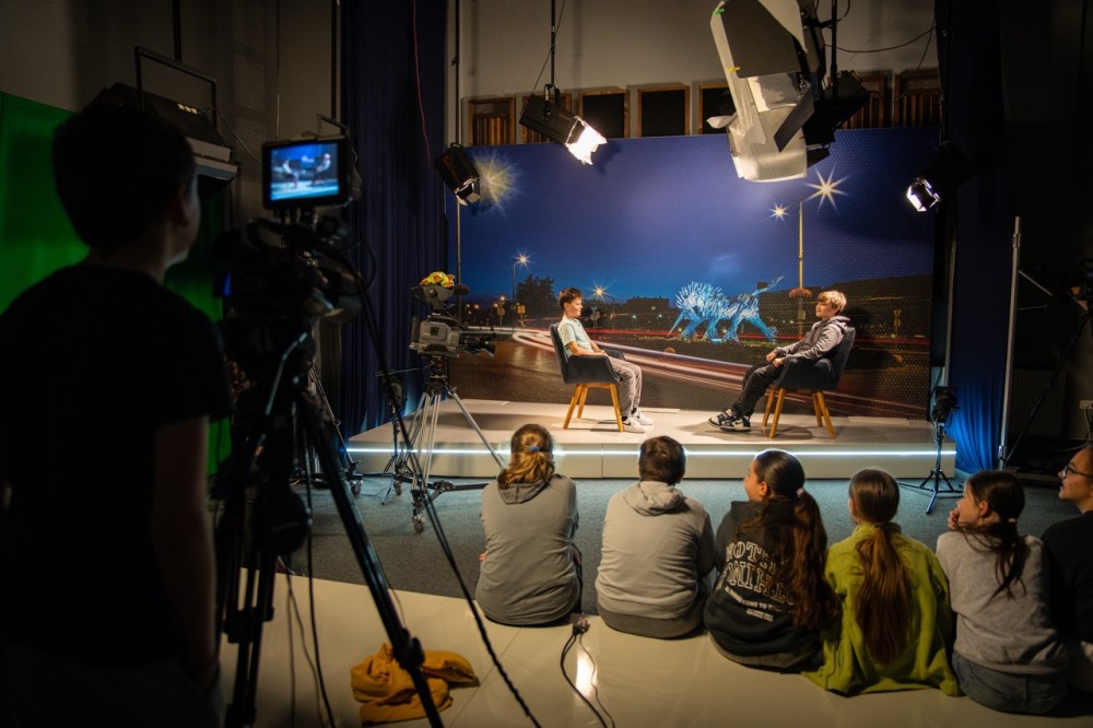 A látogatás nemcsak szórakoztató kaland volt, hanem értékes lecke a digitális kompetenciákról. Az ötödikes Kövér Benett műsorvezetőként próbálta ki magát a stúdióban, és egészen profin kérdezett az interjúalanyait alakító osztálytársaitól.
