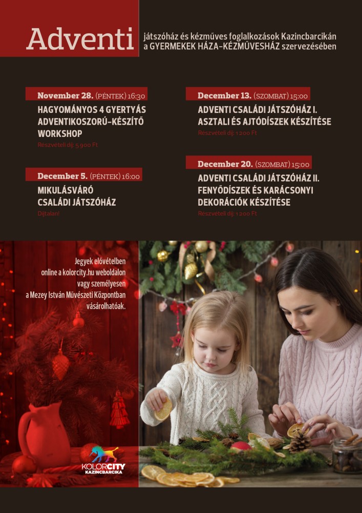 Adventi játszóház és kézműves foglalkozások Kazincbarcikán